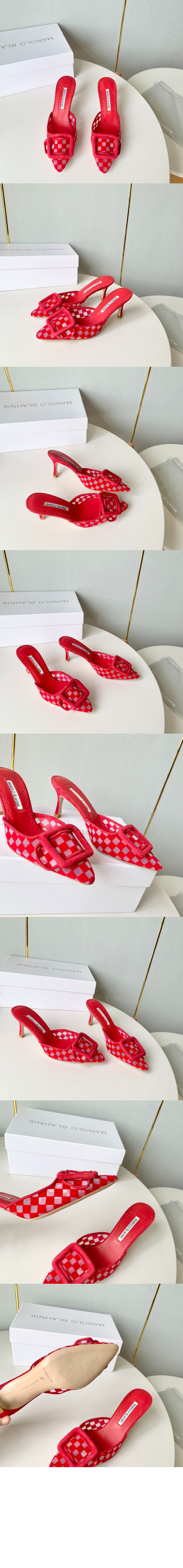 체크무늬 메시 뮬